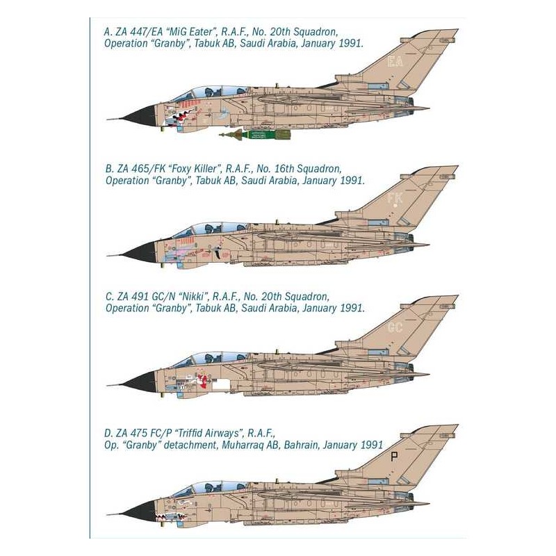 Le projet Tornado est né d'une collaboration entre l'Italie, l'Allemagne et le Royaume-Uni pour développer un avion de combat polyvalent hautes performances. Un bimoteur biplace à ailes à flèche variable a été développé pour mieux remplir sa fonction première : un chasseur-bombardier supersonique à basse altitude capable de suivre les reliefs. Le Tornado IDS (Interdictor/Strike), idéal pour les missions d'attaque, a été le premier à être utilisé par les services de vol opérationnels des trois pays qui ont développé le projet. Plus précisément, les avions destinés à la Royal Air Force britannique ont été désignés Gr. 1 et ont été utilisés activement, effectuant de nombreuses missions, pendant la guerre du Golfe de 1991.