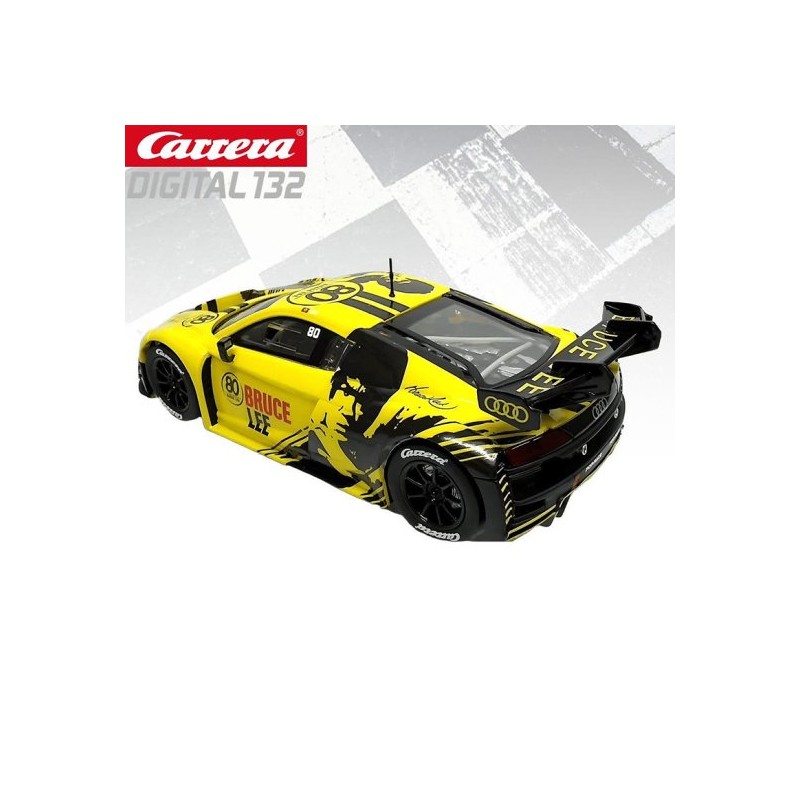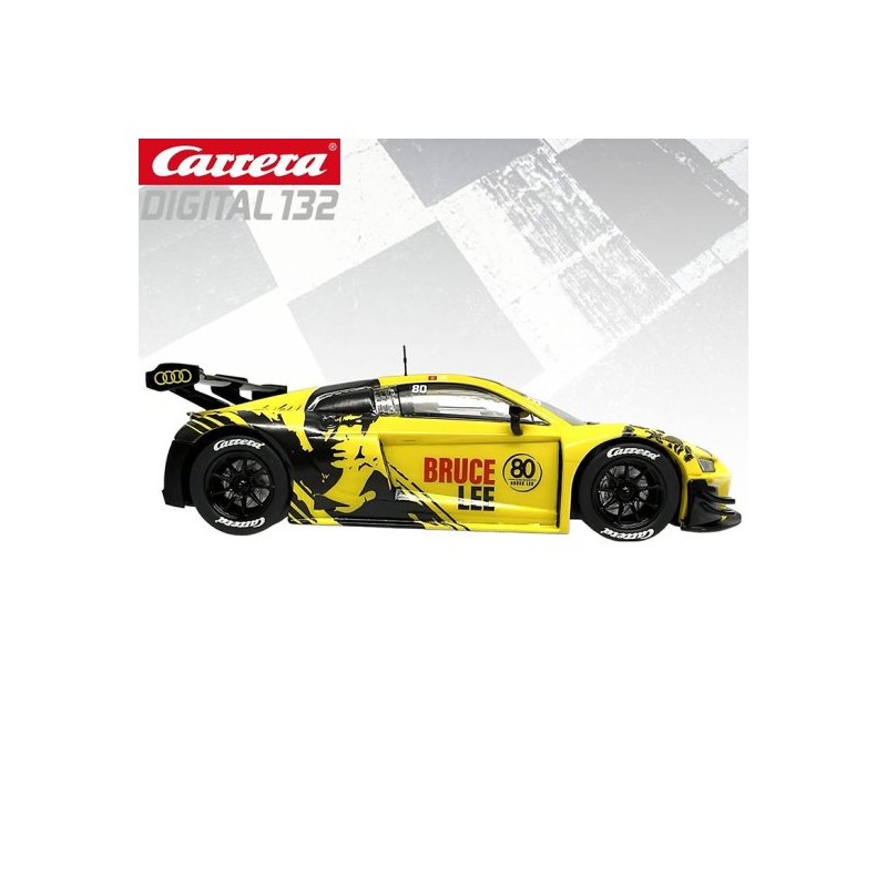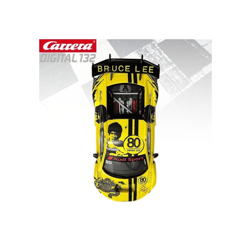 La Carrera DIGITAL 132 Audi R8 LMS GT3 Evo II "Bruce Lee" reprend l'esprit combatif et emblématique du célèbre artiste martial avec une décoration unique n°85. Cette édition limitée 2025 à l’échelle 1/32, sous licences officielles Audi AG et Bruce Lee Enterprises, est dotée d’un haut niveau de réalisme avec feux avant, arrière et de freinage.