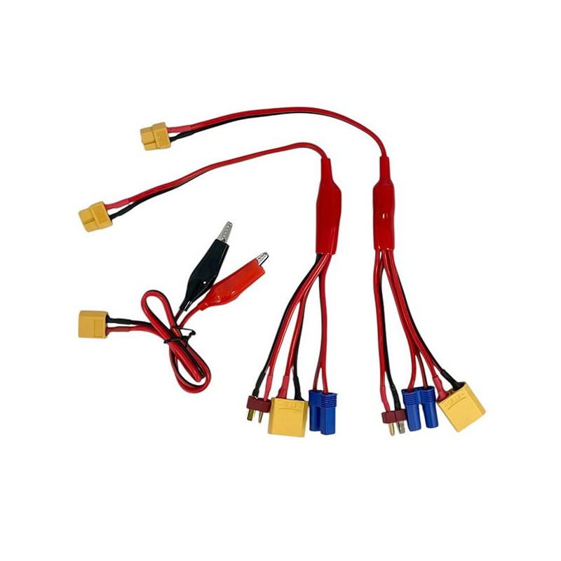 2 câbles de charge de chaque type (XT60 vers connecteur T, XT60 vers EC5, XT60 vers XT90)