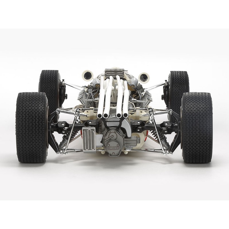 L’histoire de Honda en Formule 1 a commencé lorsque la société a franchi le pas en créant sa propre voiture, développant son propre moteur et engageant une écurie d’usine pour la saison 1964. En 1966, de nouvelles réglementations imposant des moteurs 3 litres ont obligé Honda à concevoir une nouvelle voiture, la RA273. John Surtees a remplacé Richie Ginther en tant que pilote principal de Honda en 1967, et une version améliorée s’est montrée prometteuse en remportant la 3ème place au Grand Prix d’Afrique du Sud. Voici une réédition actualisée du kit de la Honda RA273 1/12 (avec pièces en métal photo-découpé)