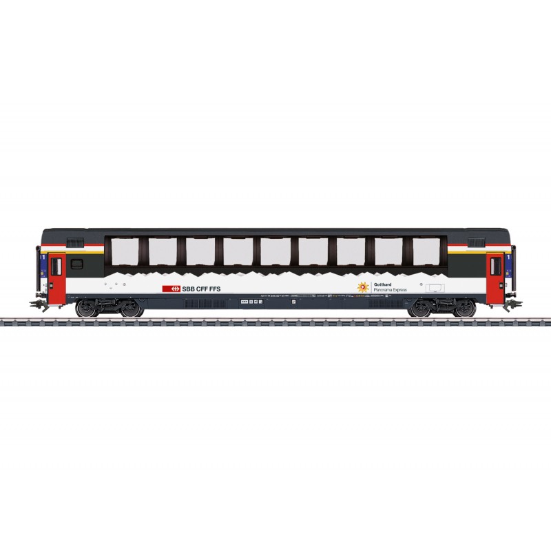 Modèle réel : voiture panoramique Apm 1re classe pour trains rapides des Chemins de fer fédéraux suisses (CFF/SBB/FFS). État de service : 2025.