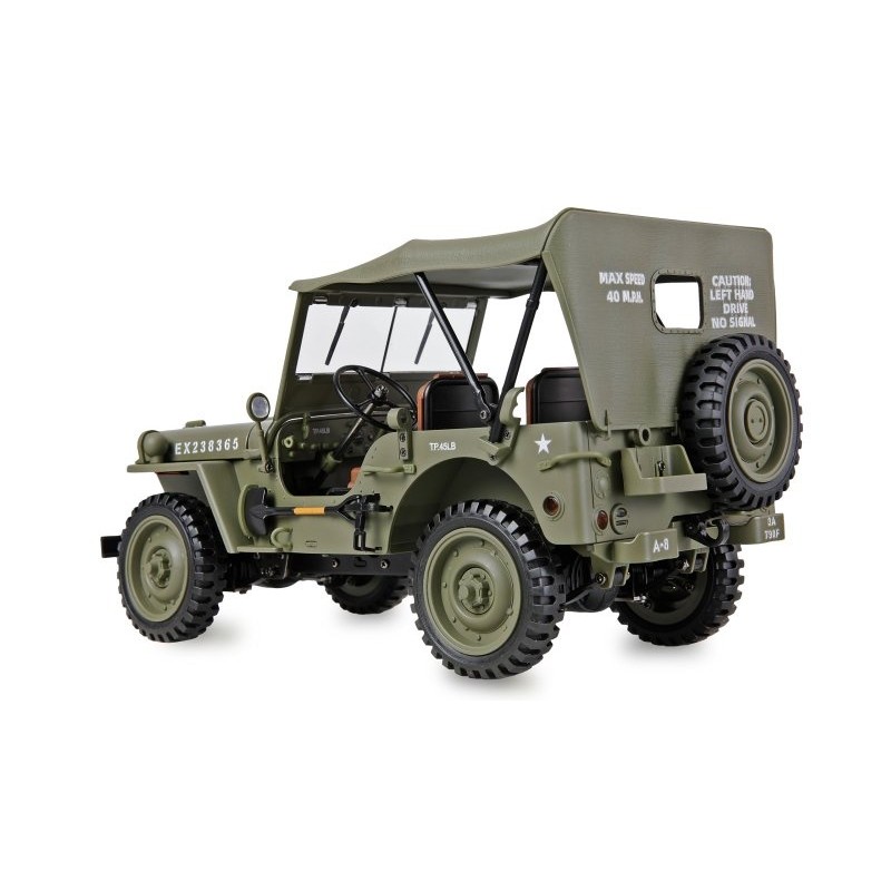 Le Jeep Willys MB Scale Crawler à l'échelle 1:14 est une reproduction fidèle du légendaire véhicule tout-terrain qui s'est fait connaître pendant la Seconde Guerre mondiale comme véhicule d'intervention robuste et polyvalent de l'armée américaine. Ce modèle télécommandé allie un design authentique à une technologie RC moderne et offre une expérience de conduite réaliste sur tous les terrains.