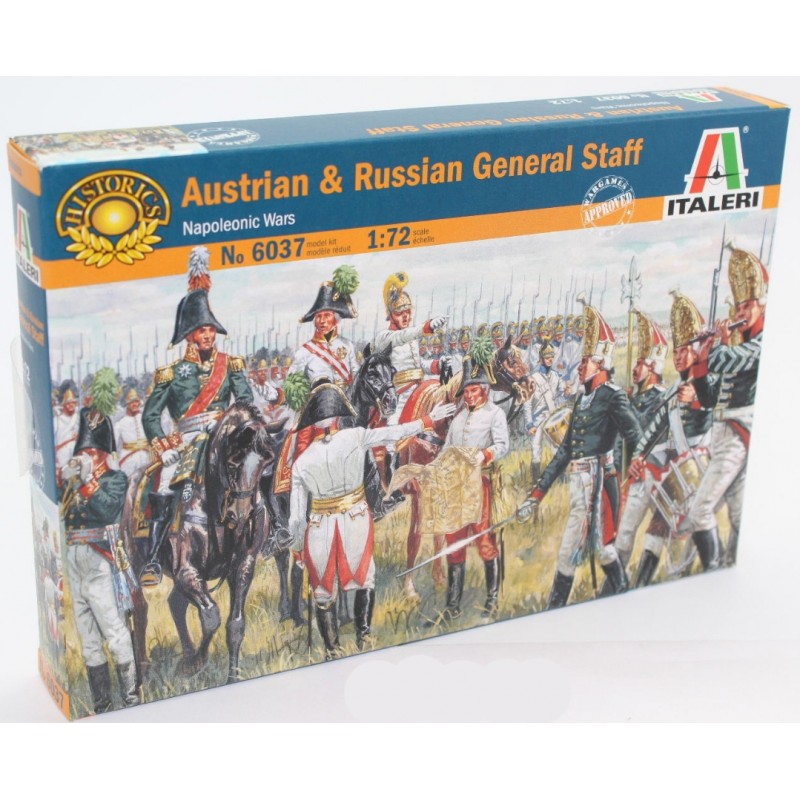 Revivez l’une des grandes heures de l’histoire napoléonienne avec le set État-major Autrichien/Russe d’Italeri (réf. 6037) à l’échelle 1/72. Ce coffret de figurines restitue une scène emblématique : le régiment de grenadiers d’élite Pavlovsky défilant fièrement devant le Tsar Alexandre Ier et l’Empereur François II d’Autriche, dans l’atmosphère solennelle précédant la bataille d’Austerlitz (décembre 1805).