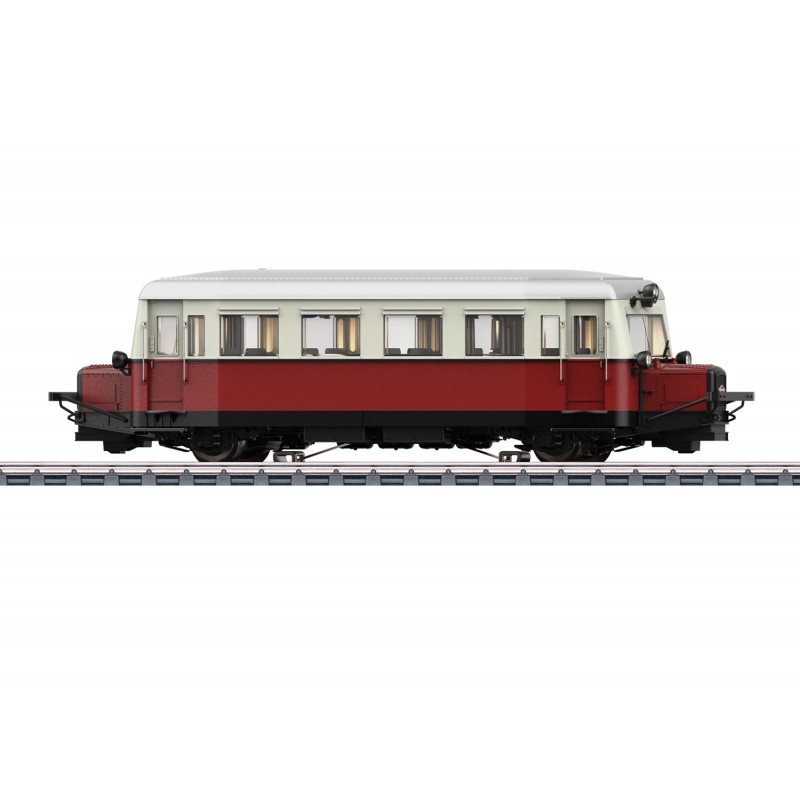 Modèle réel : Automotrice diesel Cvt-34 « Autrail de Wismar » (type « Hanovre A »), du Chemin de Fer à Vapeur des Trois Vallées (CFV3V), Mariembourg, Belgique. Livrée pourpre/blanc pur, époques V/VI (état de 1978 à 2014).
