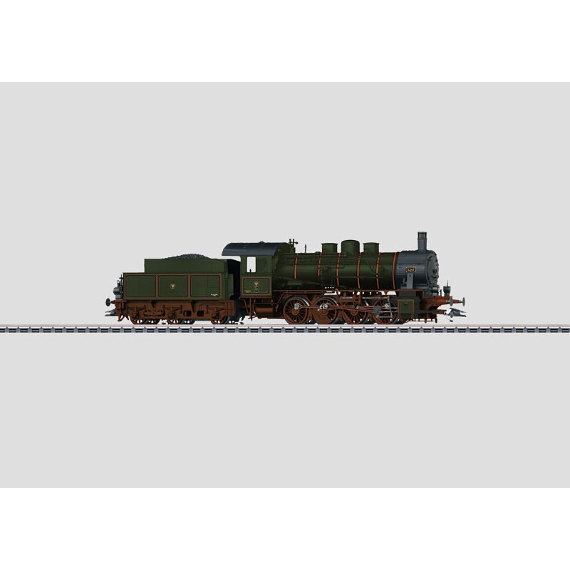 Modèle réel : Locomotive à vapeur pour trains marchandises type prussien G 8.1 des chemins de fer royaux prussiens (KPEV), avec tender classique 3 T 16,5. État de service peu après la livraison par Borsig en 1917. Locomotive 9.736 dans le livre de livraison des usines A. Borsig, Berlin-Tegel.