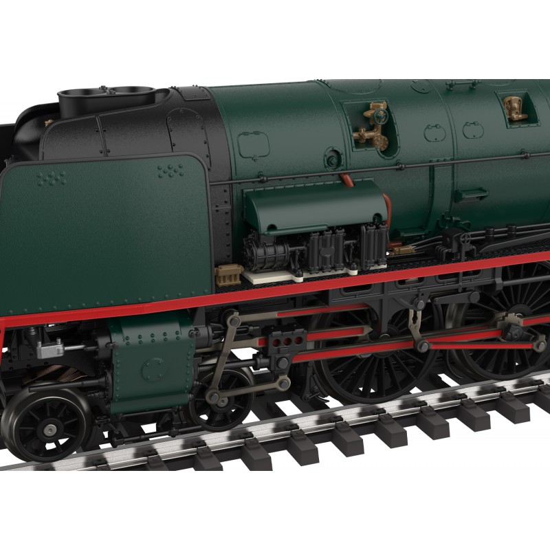 Elles étaient devenues indispensables – surtout en Europe – dans le trafic express haut-de-gamme : de puissantes machines à vapeur avec la disposition d’essieux 2’C1′ qui, équipées de deux essieux porteurs, trois essieux moteurs généralement de grand diamètre et d’un essieu porteur arrière, représentaient la conception parfaite pour combiner vitesses élevées et grande force de traction. La dénomination « Pacific » venait des États-Unis, où ce type de locomotive fut introduit pour la première fois en 1901. A partir de 1935, la Belgique ne construisit avec la série 1 pas seulement l’une des Pacific rapides les plus lourdes et les plus puissantes : l’allure imposante de cette locomotive représentait également la fierté des Belges pour les performances de leur compagnie ferroviaire. La locomotive 1002 fut conservée et remise en état de marche en 1985 pour les festivités liées au 150e anniversaire de la compagnie. Aujourd’hui, ce bolide parfaitement entretenu mais hélas incapable de rouler est exposé au musée du Chemin de fer à vapeur des 3 vallées, à Treignes. Désormais, le nouveau et superbe modèle Märklin de cette locomotive légendaire à l’élégante livrée verte-rouge-noire, avec un son authentique et le réalisme de la vapeur (générateur intégré) peut maintenir vivant le souvenir de cette Super-Pacific, contraste fascinant avec les stars modernes du rail.
