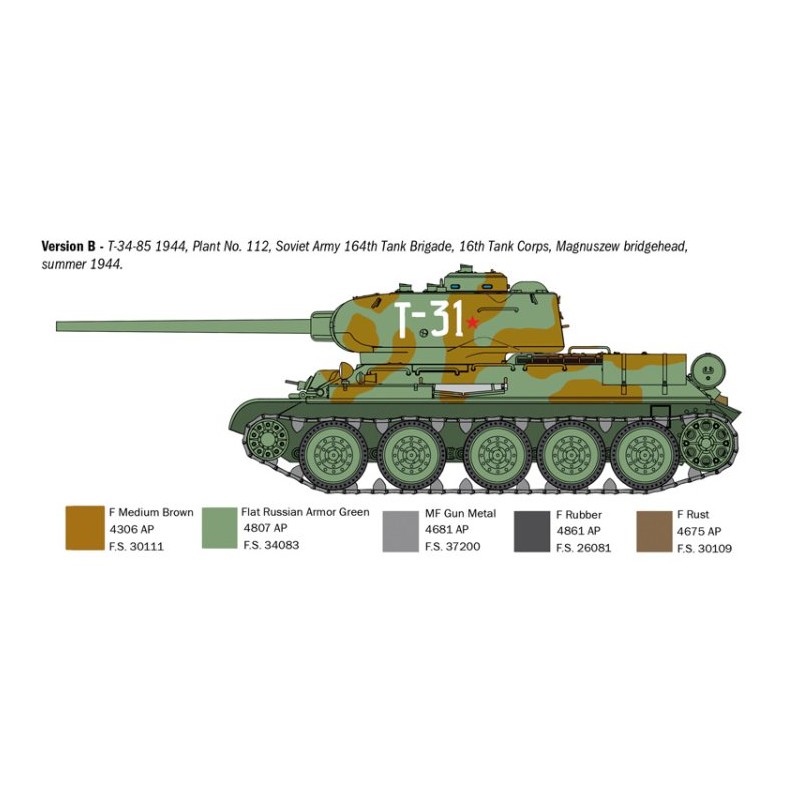 Voici la maquette Italeri 6758 – T-34/85 Zavod 112-1944 à l’échelle 1/35, une reproduction fidèle de l’un des blindés les plus emblématiques de la Seconde Guerre mondiale. Produit à partir de 1944 dans l’usine Zavod 112, ce modèle se distingue par sa tourelle caractéristique à parois épaisses et son canon de 85 mm, capable de rivaliser avec les redoutables Tiger et Panther allemands.