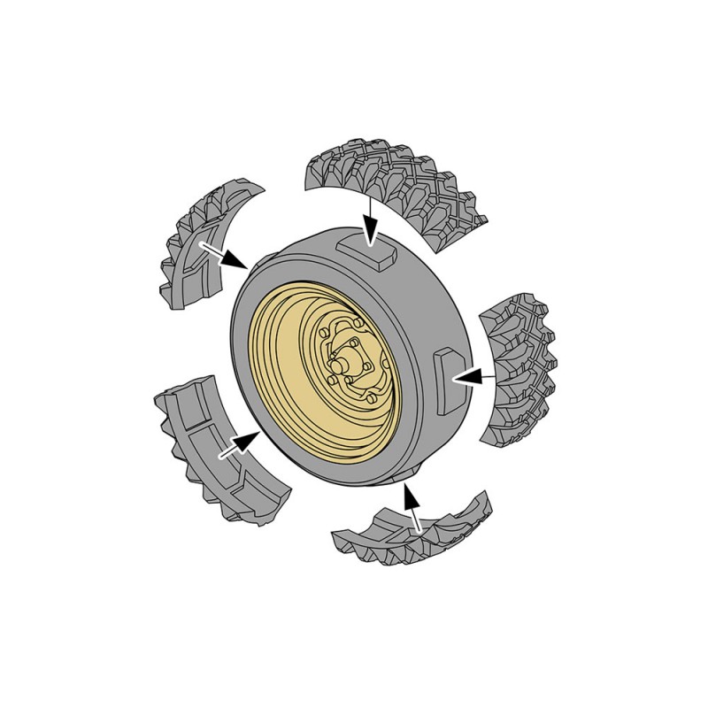 • Nouvelle grappe regroupant les pièces des pneus larges de 200mm (en plusieurs parties pour reproduire parfaitement les sculptures), roues, mitrailleuse MG34, Panzerfaust 30 et fusil Kar.98k installés sur le véhicule, pare-brise avec ou sans protection en toile et autres équipements (cantines, casques…).