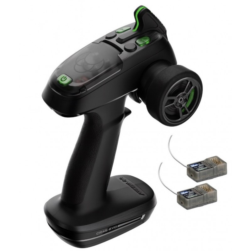 Avec la télécommande CR4S-EVO à 4 canaux et le récepteur étanche R6WP, les pilotes soucieux de leur budget peuvent compter sur une portée supérieure, une réactivité optimale et une immunité aux interférences supérieure à la moyenne.