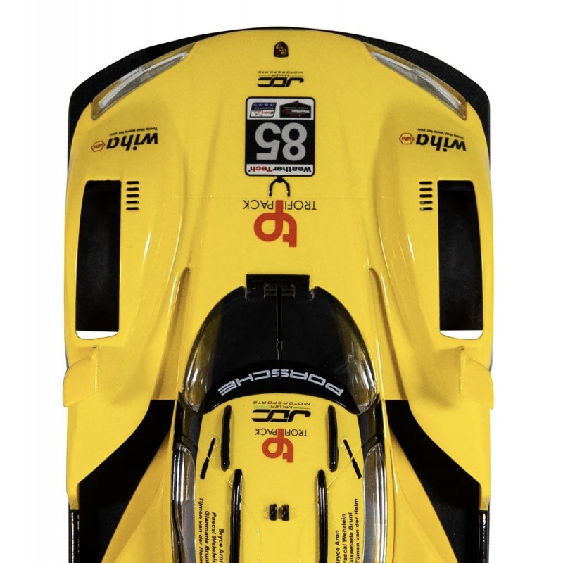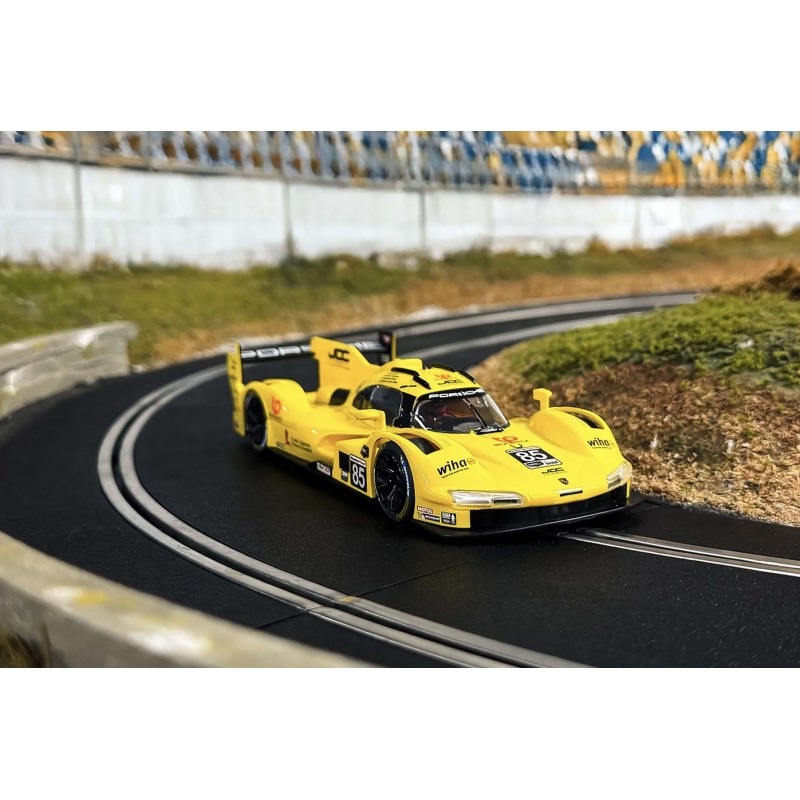 Cette réplique Scalextric reprend la livrée jaune éclatante, le numéro #85 et les détails aérodynamiques caractéristiques du prototype : carrosserie très basse, large diffuseur et lignes taillées pour la vitesse. Parfaite pour l’exposition comme pour la compétition sur circuit, elle ravira les fans d’endurance, de prototypes modernes et les collectionneurs exigeants. Faites entrer la Porsche 963 sur votre piste et visez la performance !