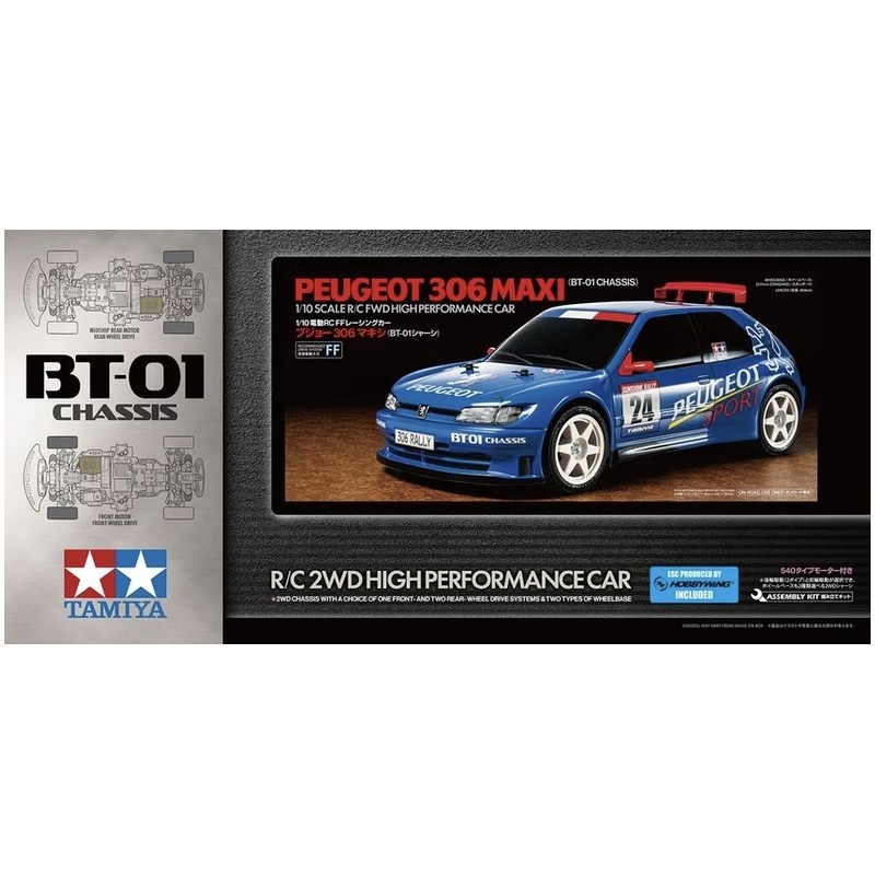 La carrosserie reproduit fidèlement la version compétition à ailes élargies de la 306 Maxi, avec son becquet de toit et ses marquages spécifiques. La base BT-01, en configuration moteur avant / traction avant (FF), offre une conduite précise et une motricité réaliste. Une voiture parfaite pour les amateurs de belles mécaniques.