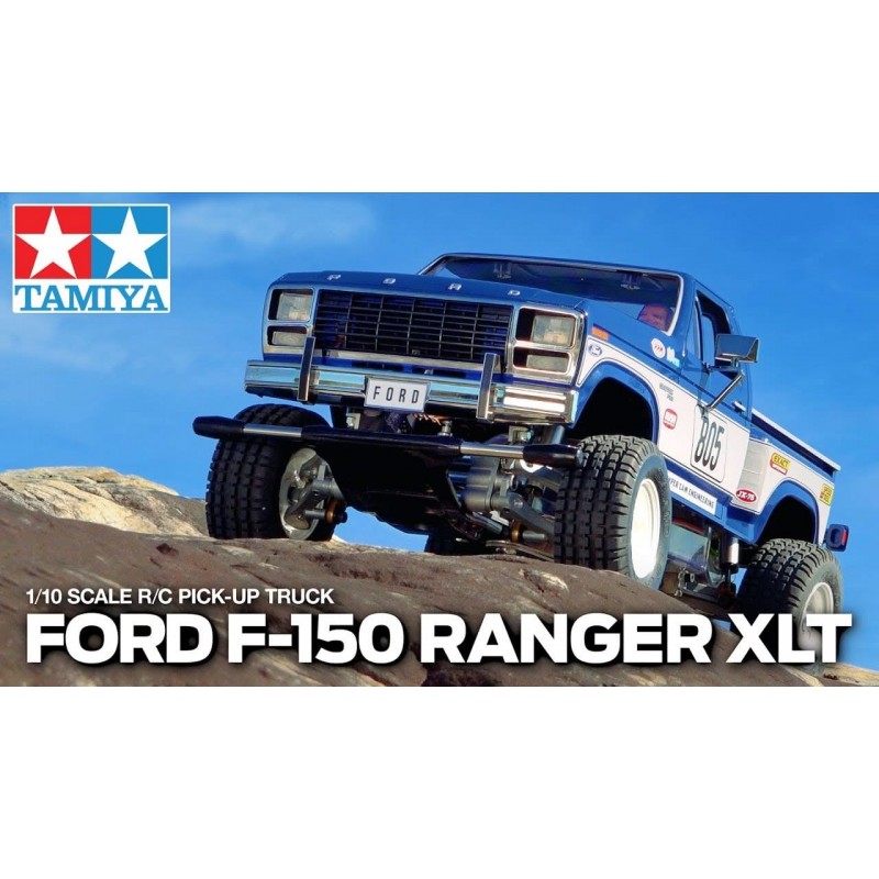Voici la réédition du Ford F-150 Ranger XLT, initialement commercialisé en 1981 sous forme de kit R/C 1/10. Le Ford F-150 Ranger 1980 a été lancé en tant que premier modèle de la septième génération de la série F. Il se caractérisait par un design angulaire et un châssis robuste en échelle.