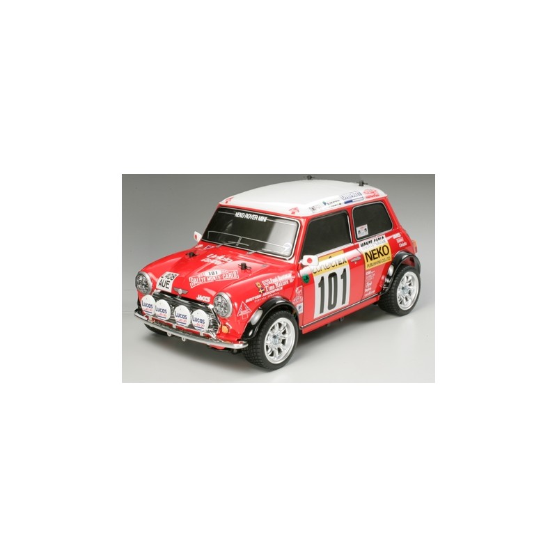 Voiture Electrique radiocommandée de type traction en kit à assembler. Série limitée, carrosserie Austin Mini version Monte Carlo sur chassis M-05