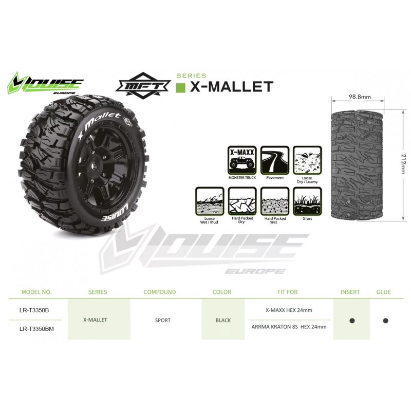 Louise RC Pneus X-Mallet MFT + Jantes X-Maxx (x2) LR-T3350B